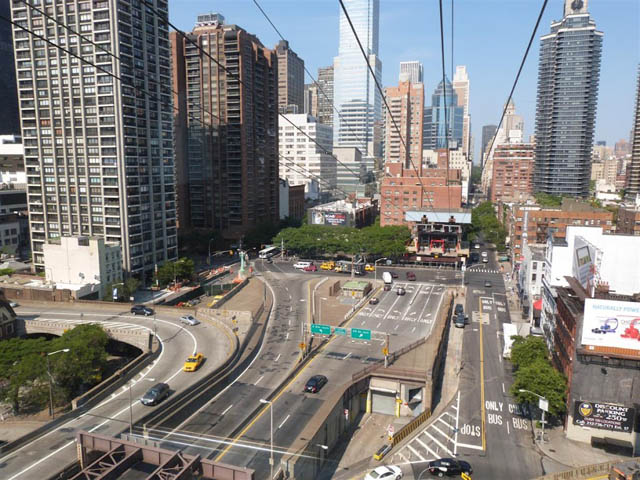 Sur Roosevelt Island, la station de tramway se trouve sur une place également nommée Tramway Plaza, à l’angle de W Road et de E Road. La station de métro Roosevelt Island (ligne orange, train F) vous permet également de rejoindre le centre de Manhattan ou le Queens.